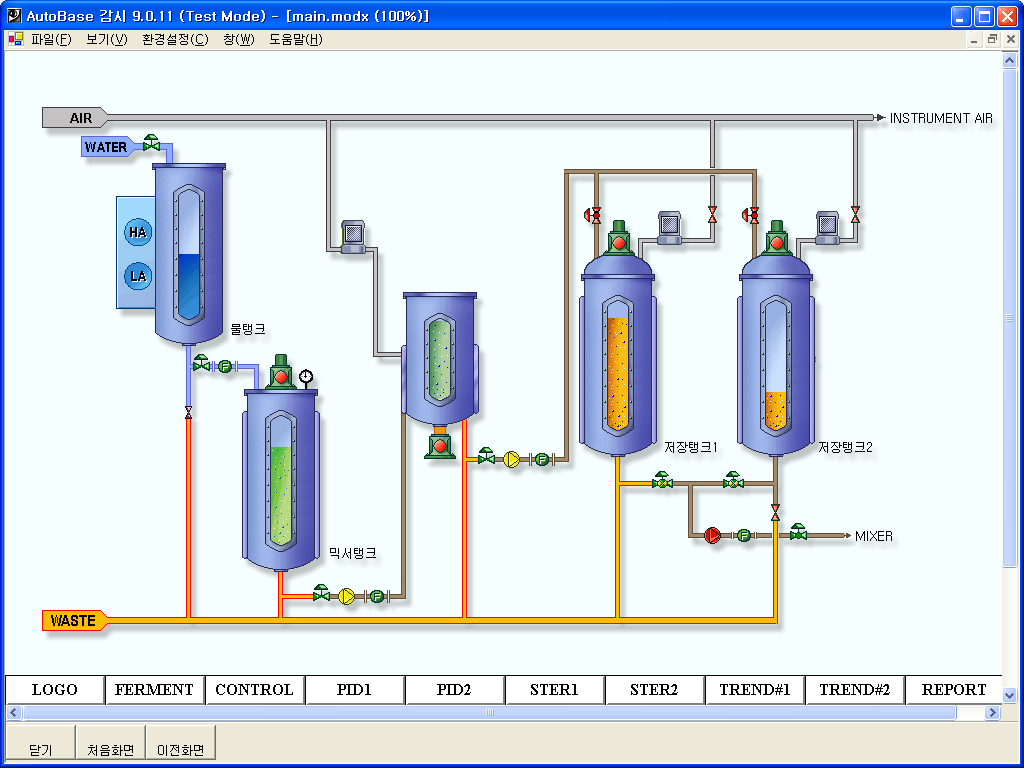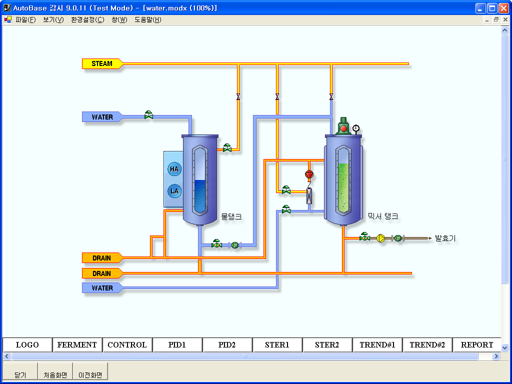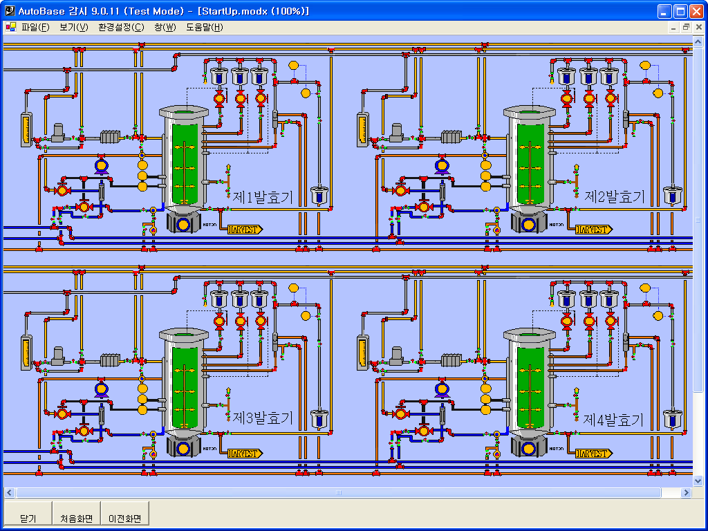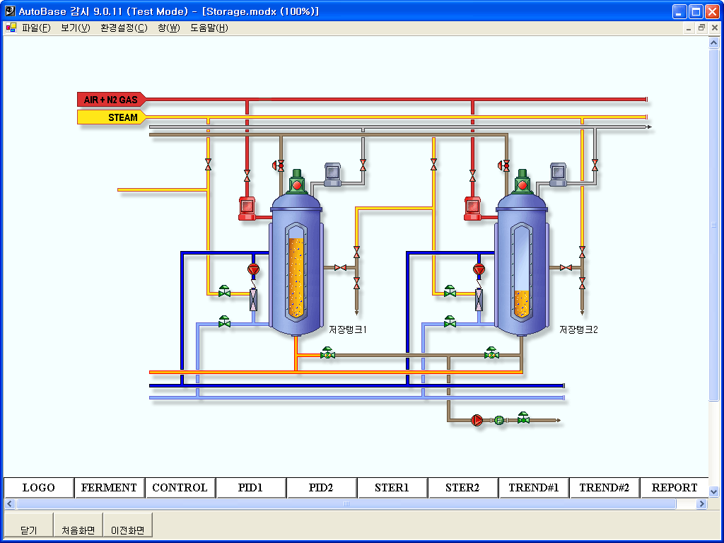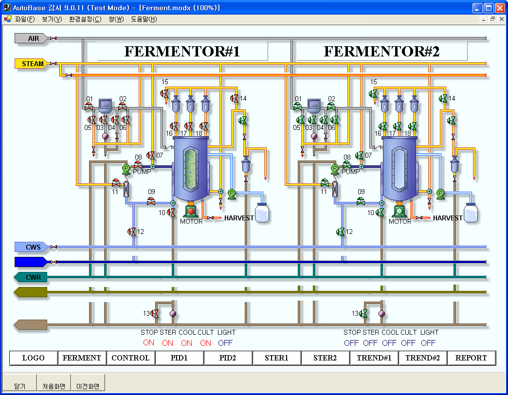 The fermentation system moves repeatedly in several-hour or day cycles. The fermentation system works to perform the process of mixture, fermentation, storage automatically in order to ripen raw materials once an operation starts. And it is configured to set up running set points, required for each course, in computers and to perform PID control in each fermenter. Multi-ports are used to increase communication speed, which are more rapid than one port connected with RS-485.