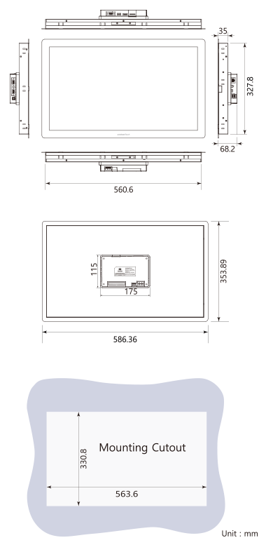 586.36mm(H)*353.89mm(V)*68.2mm(D) |